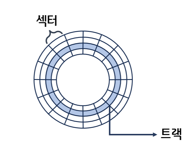 => 트랙(track)과 섹터(sector) 단위로 데이터를 저장