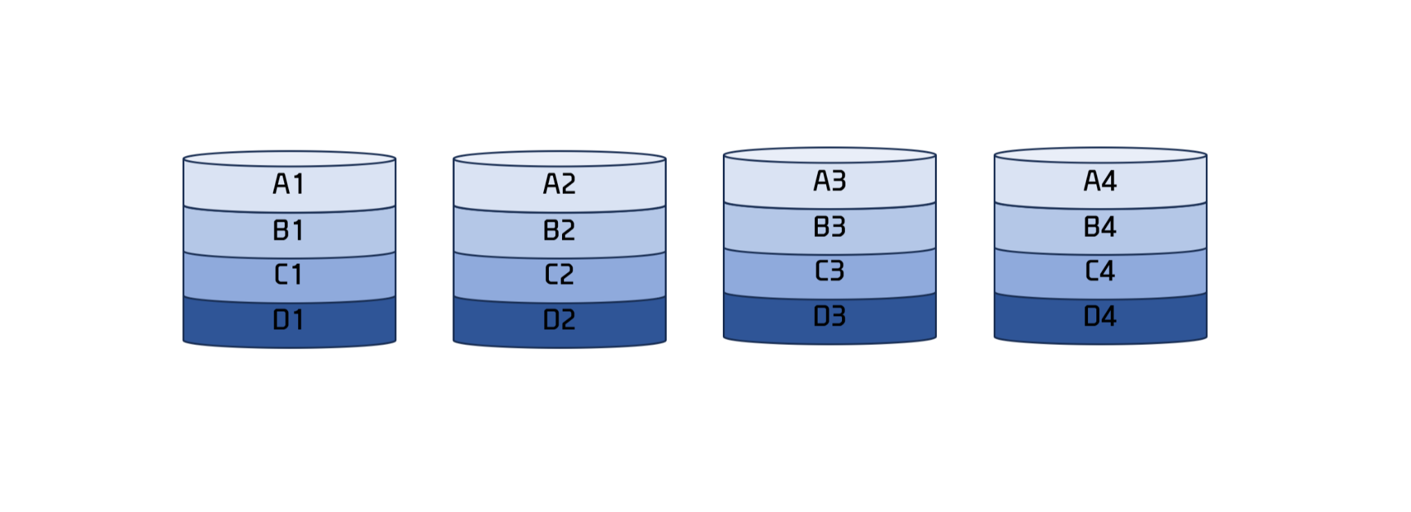 : 다수의 작은 디스크들을 배열로 연결하여 용량, 신뢰성을 높인 대용량 디스크 시스템. - RAID-0: 여러 개의 디스크에 데이터를 분산하여 저장하는 방식.