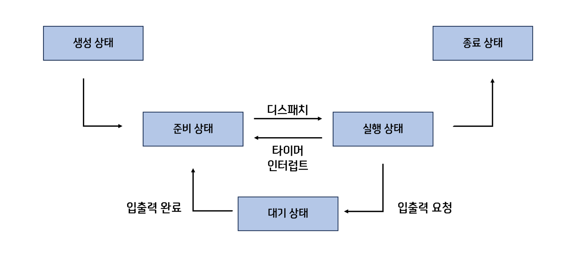 * 디스패치(dispatch): 준비 상태인 프로세스가 실행 상태로 전환되는 것 - 실행 상태(running)