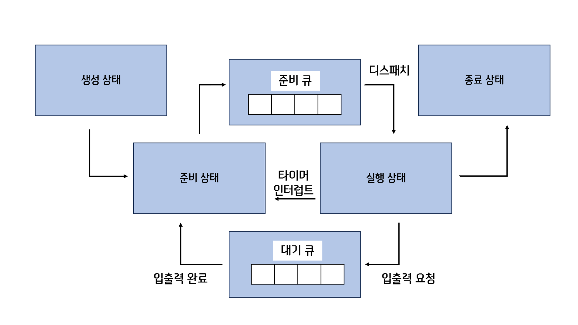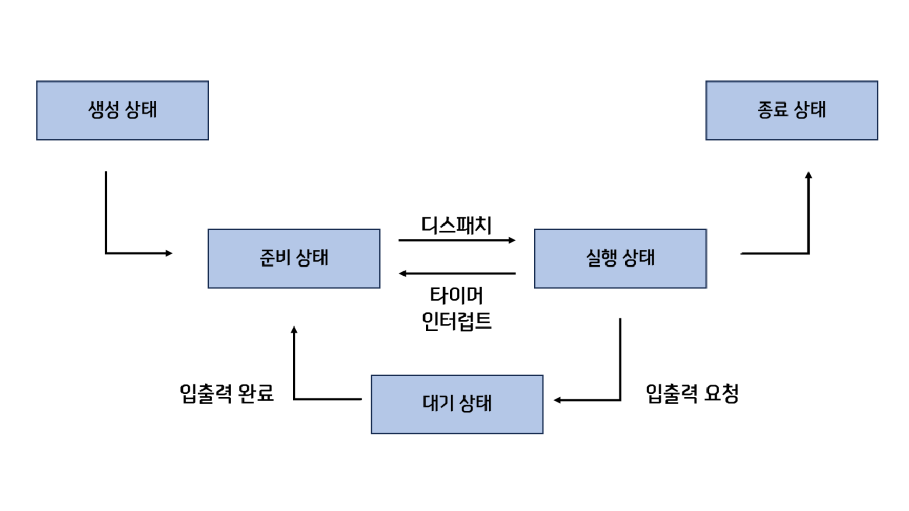 * 준비 상태에서 실행상태로 전환되는 것은 디스패치.