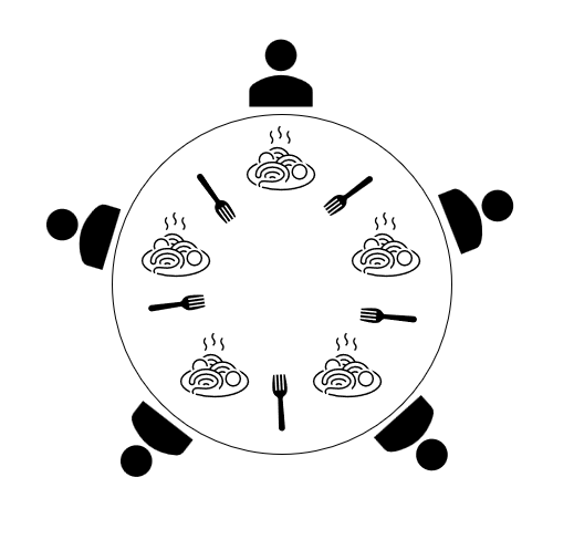 → 모든 철학자가 동시에 포크를 집어 식사를 하면 어떤 철학자도 식사를 할 수 없고 영원히 생각만 하는 상황 발생. 즉, 교착 상태(deadlock) 발생.
