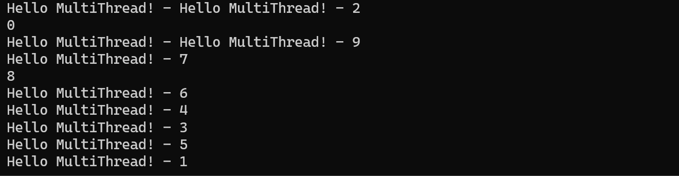 이는 스레드 객체들이 어떤 순서로 실행될지 보장된 바가 전혀 없기 때문이다. 이 코드를 다시 실행한다면 또 다른 결과가 나올 것이다.