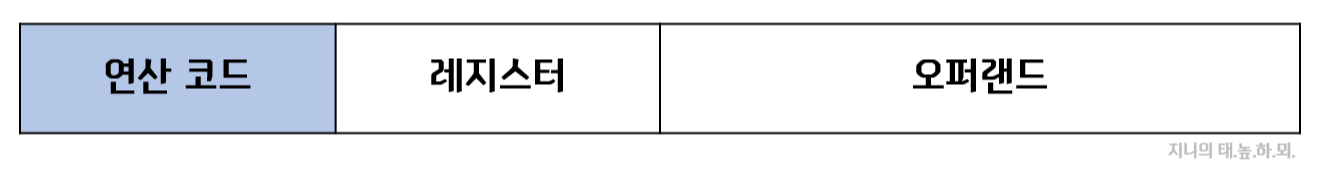 명령어의 형식은 연산코드 레지스터 오퍼랜드로 구성되어 있다.